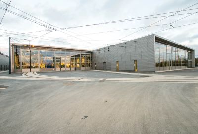 Tekst: By 2022, a tram serving 23 stops will be running in Liège. The maintenance centre, washing facility, tram depot and park and ride car park to support this have been realised on the Bressoux site at one end of the route. The 4,200 m² maintenance centre comprises a steel structure weighing around 300 tonnes, with portals supporting walkways and maintenance passages. The 3,900 m² depot is 234 metres long, weighs 150 tonnes and is made up of steel girders resting on a steel column on one side and anchored to the concrete building of the park and ride car park on the other. The washing facility comprises concrete walls topped with steel columns and girders that in turn support the roof plates and glass domes. Steel parapets and walkways complete the picture. Steel was an obvious choice, not only because of its economic and aesthetic properties, but also because it is quick and easy to install.