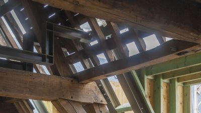 Tekst: After standing empty for forty years, the restored Predikherenklooster in Mechelen has been given a new lease of life as a city library. The monastery was built in the seventeenth century and is made up of four wings around a square courtyard. One of the biggest challenges during the restoration was the repair and reinforcement of the monumental wooden roof trusses and attic floor. The existing roof construction has a self-supporting and insulating skin on steel trusses, which are, in turn, attached to the horizontal rafters of the existing wooden roof trusses. As far as was possible, the steel trusses have been concealed to let the authentic library attic appear to its full advantage. All the other steel was also hidden from view, with the exception of the columns of the mezzanine floors. In total, the project used approximately 160 tonnes of S355 steel in the form of hot-rolled profiles.