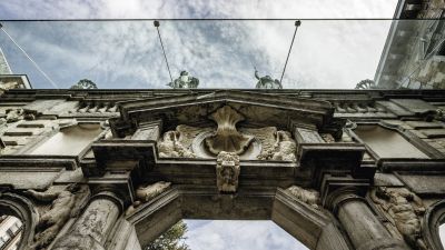 Tekst: The Rubens House in Antwerp was designed by Pieter-Paul Rubens early in the 17th century and is now in use as a museum. Over the years, the house’s portico – one of the two original elements and a protected heritage site – has been affected by stone erosion and weathering. To preserve the portico and protect the structure from future impacts, a discreet canopy was installed above it. This glass butterfly canopy is 15.6 metres long and weighs 30 tonnes. Its underlying structure comprises three bays made of bead-blasted stainless steel, which were positioned on the 12 metre high portico using a crane. After the bays were installed, they were anchored to the columns of the porch and then filled with lead to give the canopy the necessary strength and wind resistance. The structure features custom-made plinths for the statues, and the laminated glass sheets are clamped between unique stainless steel clamping profiles.