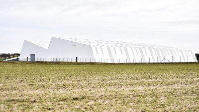 Tekst: At the former military airport in Brustem, a gatehouse and new aircraft hangar symbolise the future of the fledgling drone industry. The facade and roof of the shed are both made of metal sandwich panels and form a single whole, whilst preformed steel plates are used for the curves in the ridges. The decision to use spatial steel truss structures was driven by the need for a large area free of supporting columns to stable the aircraft. The building is made up of two main volumes in the form of two porticoes of lattice girders converging on a central column. The 6,650 m2 hangar will therefore only have one central row of columns, for which a W-profile lattice structure has been chosen. The top and bottom rail are made of rolled H-profiles in HEA180 and HEA200 respectively, whilst internal members are square box sections (90/4; 100/4; 120/4). Steel grade S235 was used as standard, except for the bottom rail of the main trusses which is in S275.