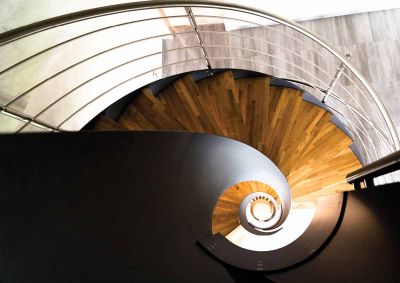 Tekst: The provincial cultural centre in Namur was built in the early 1960s and since its renovation and expansion, which included the addition of the spectacular ‘Tambour’ theatre hall, has been known as the ‘Delta’. Magnelis steel was used to contrast with the bamboo facades and to create the large movable vertical shutters that protect the west facade from the sun. Custom perforated sheet metal (71 %) was used for all parapets, which are made of 2 mm thick galvanized steel. The ‘Tambour’ rests on a central steel column (diameter 300 mm) and twelve arms in AE355 steel (355 N/mm²), while seven peripheral columns (diameter 150 mm) absorb any asymmetrical loads. Steel has also been used for the suspension systems of the technical equipment in the various theatre halls and for a stairwell in which the stairs are supported by 2 mm thick sheet steel elements, without the need for wind bracing with diagonal struts.