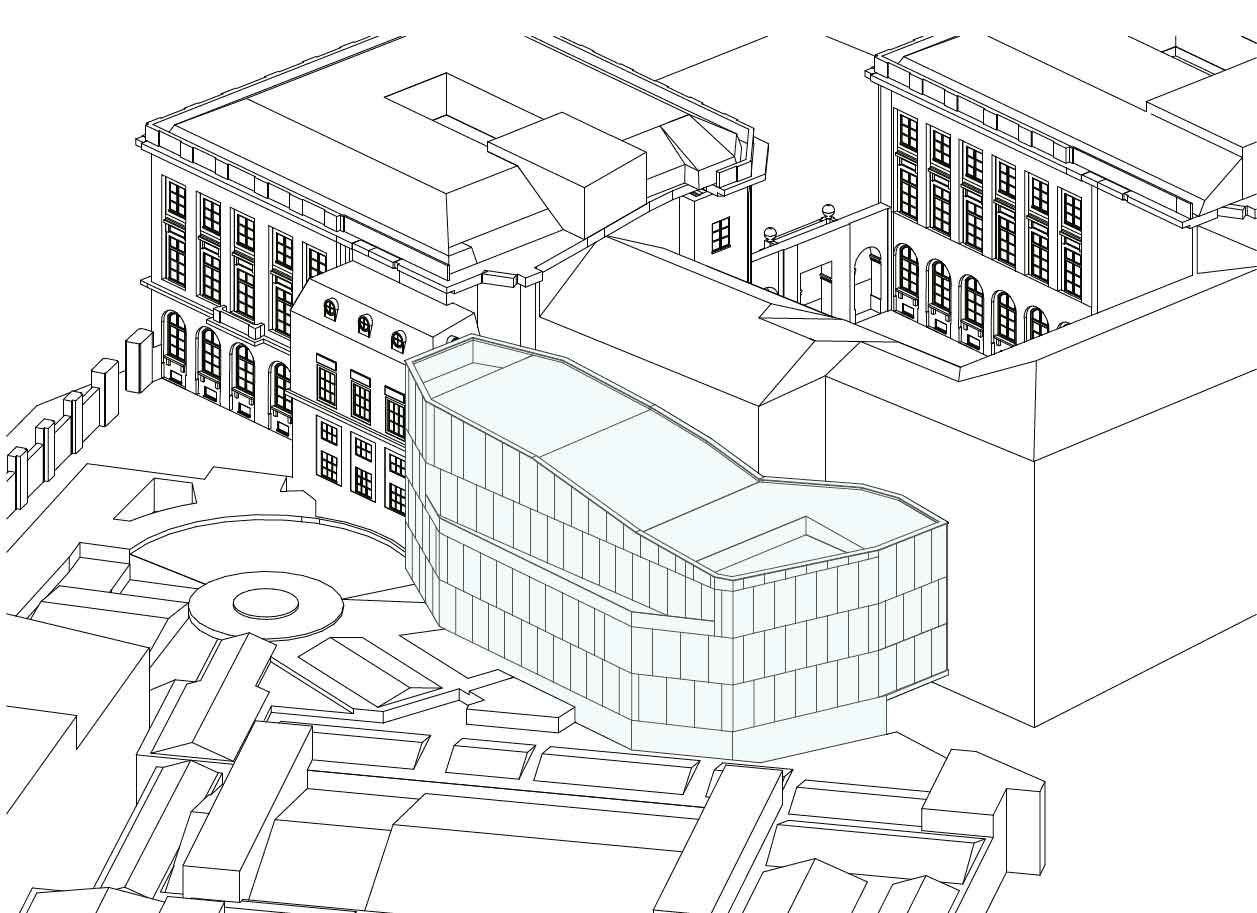 Het project van het LE CHAT cartoonmuseum past in een uitzonderlijke stedelijke en historische context op de Kunstberg in Brussel, op een restperceel in de vorm van een boon tussen het BIP en Bozar. Deze nieuwe hedendaagse constructie van zes bovengrondse verdiepingen vervangt een gebouw zonder erfgoedwaarde binnen een geklasseerd gebied. Het architecturale ontwerp, van de hand van Atelier Pierre Hebbelinck, is het resultaat van een dubbele extrusie, bepaald door de grondoppervlakte en het respect voor de zichtkegel vanaf het Koninklijk Paleis. De organische omhulling die hieruit voortvloeit, gaat een dialoog aan met de bestaande bebouwing via een metaforische gevel met holle baksteenafdrukken.