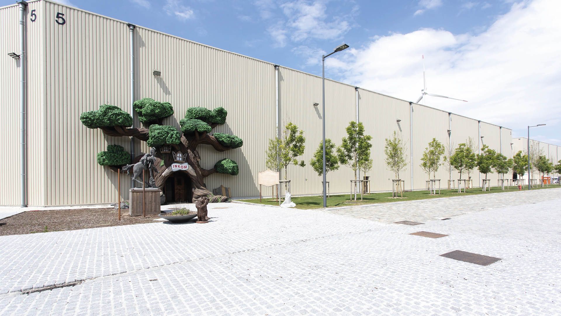 Pour réaliser la construction des entrepôts, tant de l’acier S235 que du S355 ont été utilisés. La structure de base de la partie avant du ‘hall d’événements’ se compose de poutrelles et de colonnes d’acier en treillis, ce qui a représenté un véritable défi en termes d’ingénierie. La partie arrière a été construite de façon classique.