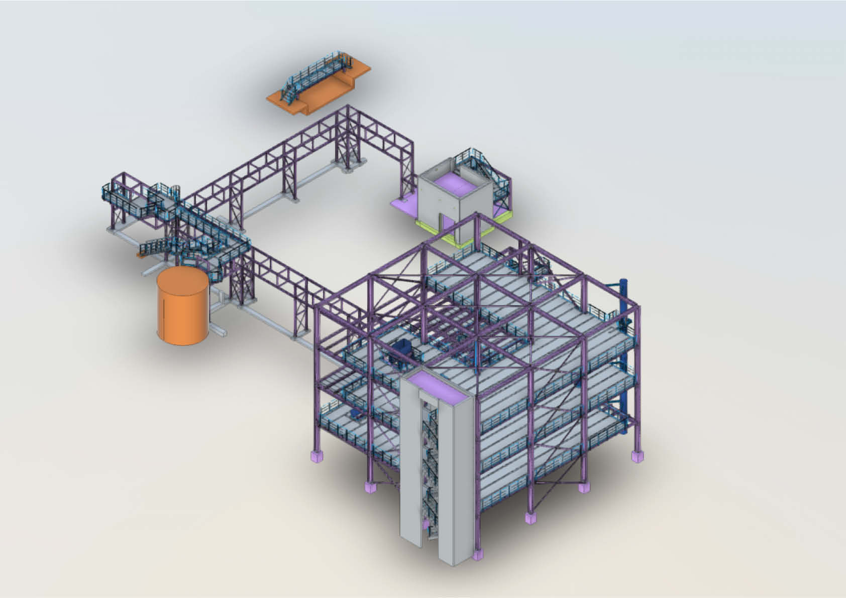La pièce maîtresse du complexe d’entraînement est le bâtiment de processus ; un cube tridimensionnel flexible en acier de 18 m de haut et une taille de cadre de 7,2 m où un foyer d’incendie peut être mis en scène à divers endroits et étages et pour lequel différents scénarios d’entraînement peuvent être élaborés. Le bâtiment de processus est accessible par 2 escaliers : un noyau en béton résistant au feu et une cage d’escalier ouverte en acier.