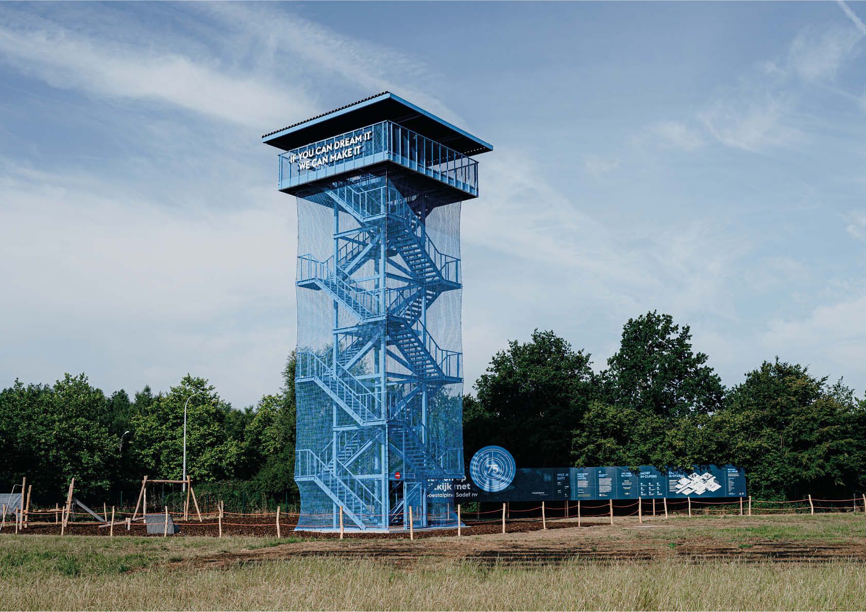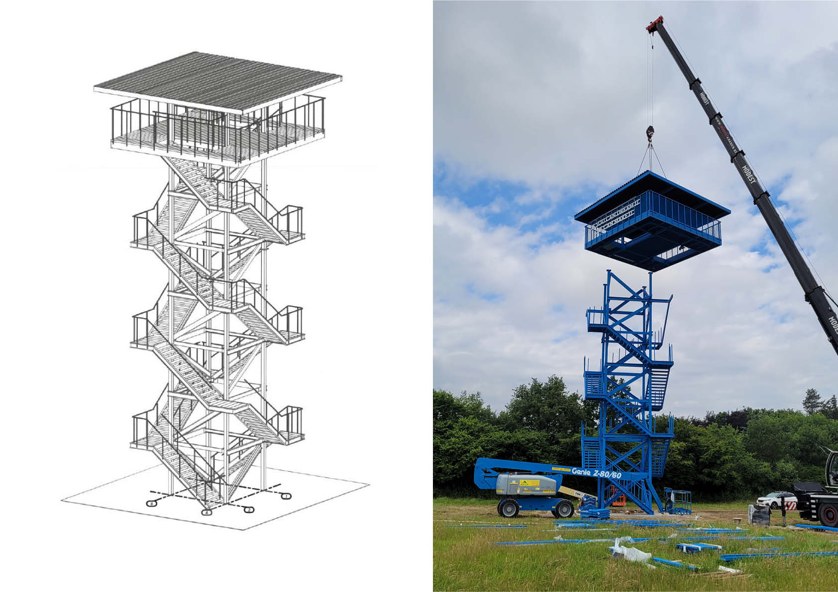 De torens staan in het teken van ‘Industry meet nature’. Ze werden ontworpen door ingenieurs van voestalpine Sadef en zijn opgebouwd uit stalen profielen die eigenlijk een andere toepassing hebben.