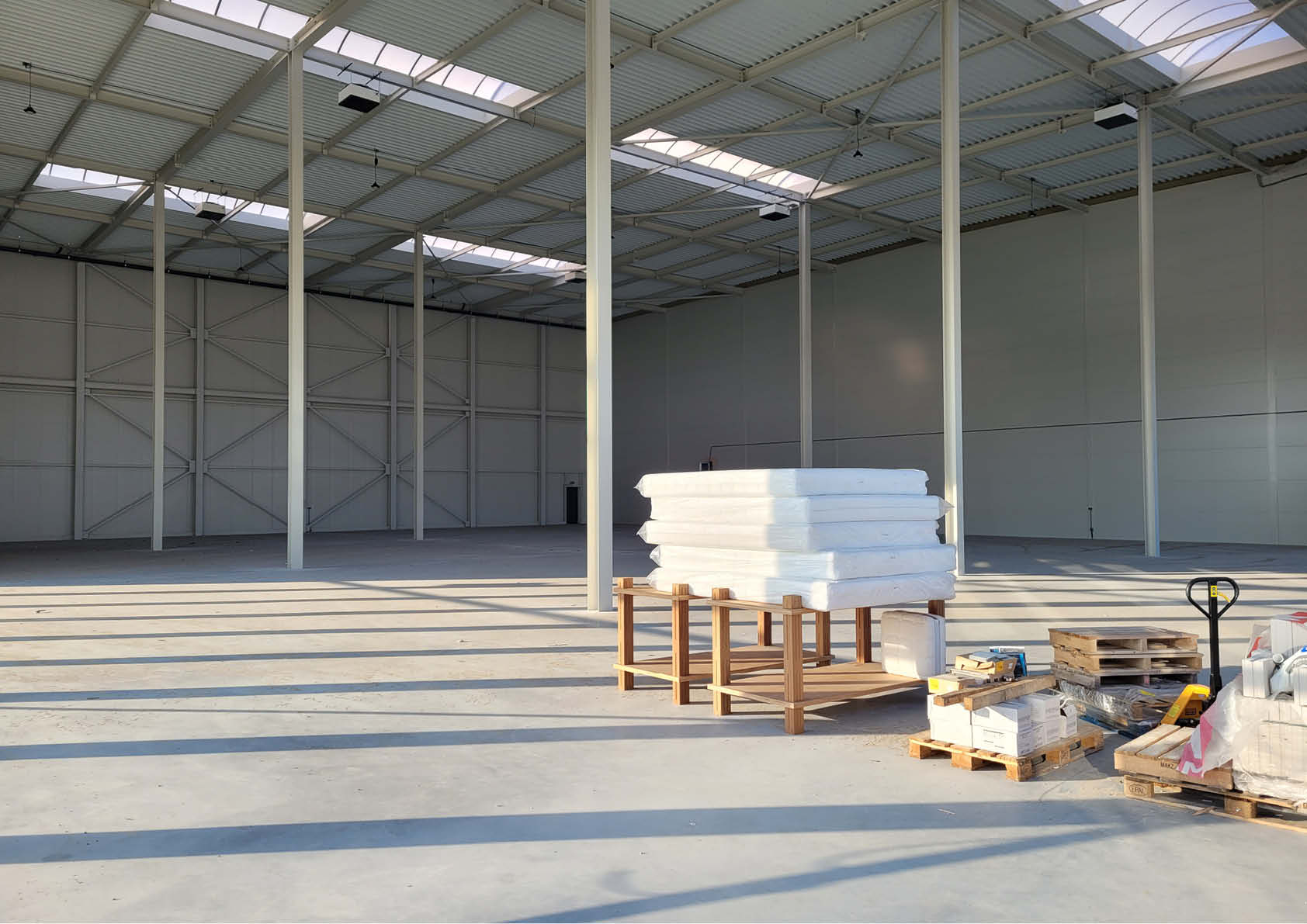 Staaltoepassingen binnen het project zijn de volledige draagstructuren van het gebouw, waaronder de kolommen, dakliggers, kantelnokken ter hoogte van de brandwanden, de gevelbekledingen uit geïsoleerde sandwichpanelen en de geprofileerde dakplaten.
