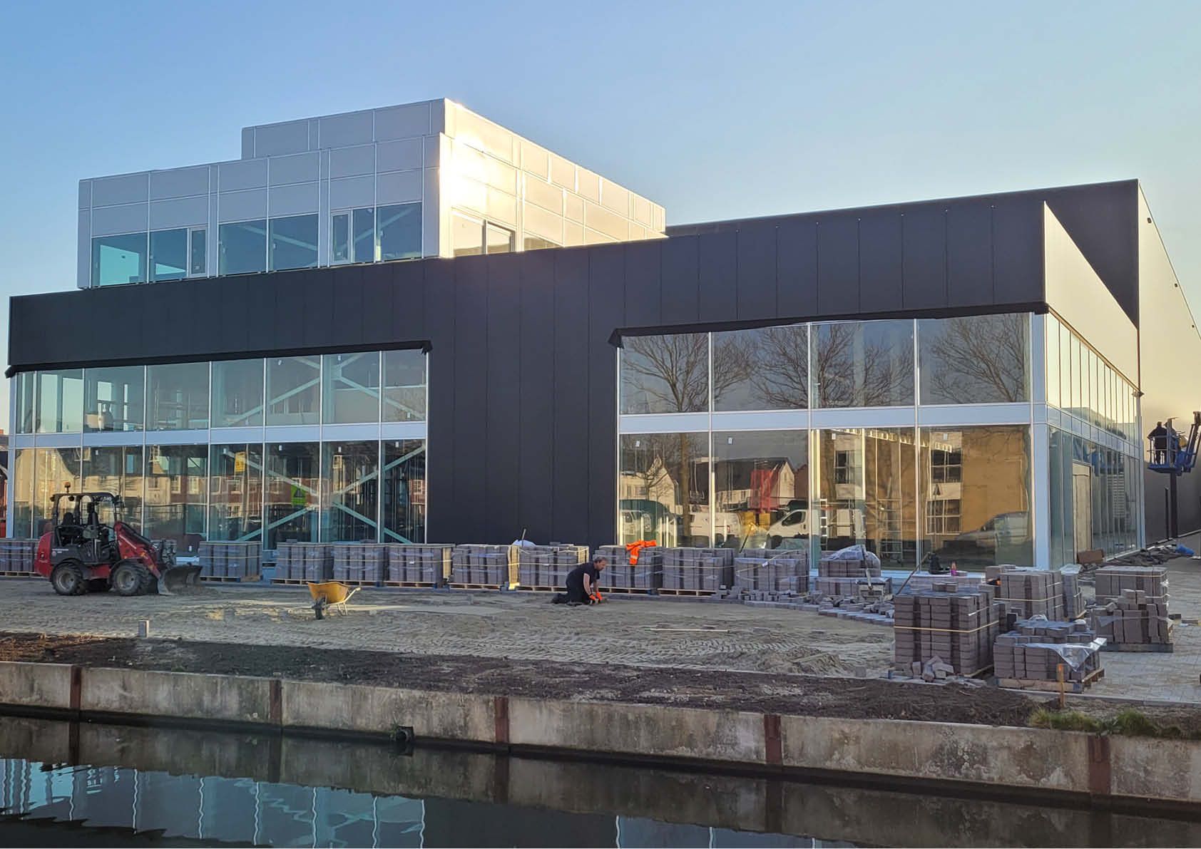 Vastgoedmakelaar Aron Investments uit Tilburg (NL) startte begin 2021 met de eerste fase van de 5.000 m2 logistieke hal in Berkel (NL). Eind 2021 werd ook de tweede fase, een gelijkvloerse kantooromgeving met bovenliggende appartementswoningen in uitvoering gebracht. Door de ligging werd het esthetische aspect van het gebouw een belangrijke factor in het ontwerpproces.